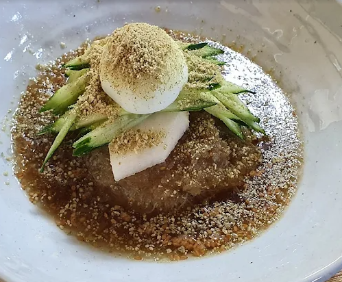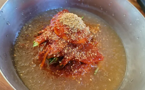 | 물냉면 | 시원한 육수, 뒷맛 깔끔 | 하얀비빔냉면과 반반 구성 인기 |